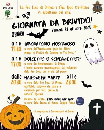 Venerdì 31 ottobre Ormea si trasformerà in un borgo da brivido per una giornata interamente dedicata ad Halloween, tra laboratori, giochi e una grande festa serale.La manifestazione, organizzata dalla Pro Loco di Ormea in collaborazione con l’Associazione Ippo Cre-Attivo e con il sostegno dei commercianti locali, offrirà un ricco programma…