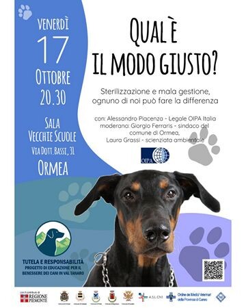 Incontro sulla gestione responsabile degli animali Giovedì 17 ottobre alle ore 20.30, presso la Sala Vecchie Scuole di Ormea (Via Dott. Bassi, 31), si terrà l’incontro “Qual è il modo giusto?”, dedicato al tema della sterilizzazione e della corretta gestione degli animali domestici. L’iniziativa, organizzata nell’ambito del progetto “Tutela e…