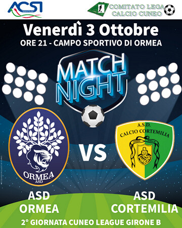ASD Ormea vs ASD Cortemilia Venerdì 3 ottobre il Campo Sportivo di Ormea sarà il teatro della partita di 2ª Giornata Cuneo League Girone B, che vedrà affrontarsi i padroni di casa dell’ASD Ormea contro i coriacei avversari dell’ASD Cortemilia Calcio. L’appuntamento è fissato per le ore 21:00. La Cuneo…