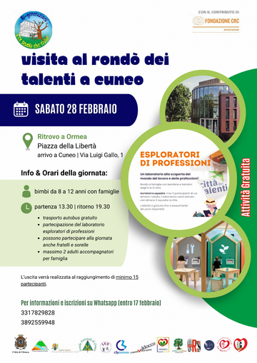 Alla scoperta del futuro: gita gratuita per ragazzi al Rondò dei Talenti di Cuneo Un’opportunità unica per i giovani esploratori di Ormea: una giornata a Cuneo tra gioco, creatività e scoperta delle professioni. Nell’ambito del progetto “Ri-generazioni – L’ex scuola che rivive”, sabato 28 febbraio è in programma una trasferta…